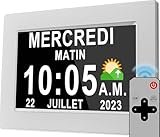 - 𝗚𝗥𝗔𝗡𝗗 É𝗖𝗥𝗔𝗡 𝗛𝗗 𝗟𝗨𝗠𝗜𝗡𝗘𝗨𝗫: L’horloge numérique originale avec écran haute résolution 1280 * 800 affiche clairement l’heure et la date en lettres grasses et l’icône Soleil / Lune. Pas de virgule déroutante sur la date ! L’horloge affiche également 7 heures de la journée : MATIN, MIDI, APRÈS-MIDI, SOIR, NUIT, MINUIT, AVANT L’AUBE