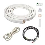 • Le kit se compose de deux tubes isolés 1/4" et 3/8" (6,35 mm et 9,52 mm), tous deux x m de long avec écrous de raccordement/collets. Prêt à installer.