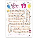 - [Format A4 – sans cadre] La carte anniversaire 77 ans femme « La Fabuleuse Route vers les 77 » 1948 est un cadeau nostalgique. Imprimée sur un équipement professionnel et livrée dans une enveloppe cartonnée rigide, elle est prête à être offerte. Conçue au format A4, cette carte anniversaire 77 ans homme s’intègre parfaitement dans un cadre photo standard. Plus qu’un simple souvenir, cette carte 77 ans peut également devenir un élément décoratif élégant dans votre intérieur