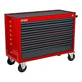 STAHLWERK Servante d'atelier XL avec 7 tiroirs - Chariot à outils verrouillable - Chariot de montage professionnel sur roulettes Long-Life caoutchoutées - Organiseur mobile pour l'industrie